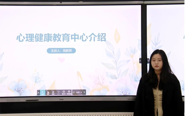 会议期间,苑新然同学首先概述了心理健康教育中心的架构与运作机制,随后详细阐释了中心内各功能室的具体配置及其功能,并热情鼓励大家实地参观体验。接着,她展示了心理健康教育系列活动的视频资料。最后,苑主席向2024级心理委员清晰地说明了心理健康教育中心的地理位置及预约流程,以激励更多人深入了解并参观心理健康教育中心。