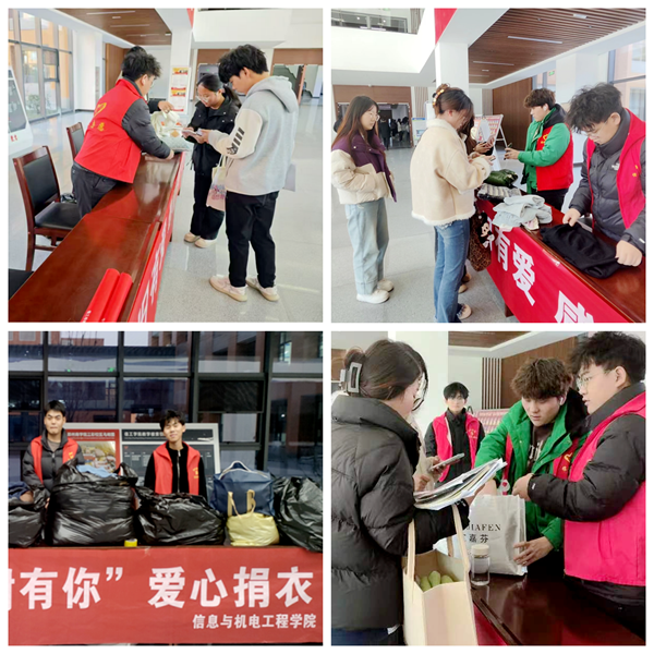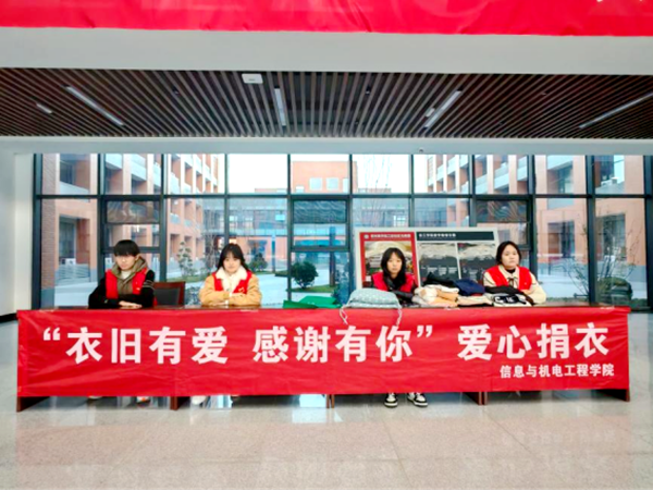 为扎实推进志愿服务工作,响应国家关于减少资源浪费的政策,展现当代大学生乐于助人、奉献友爱的精神,在11月28日至11月29日,我院“信”火相传服务队于信工大楼一楼大厅举办“衣旧有爱,感谢有你”冬季温暖月活动。