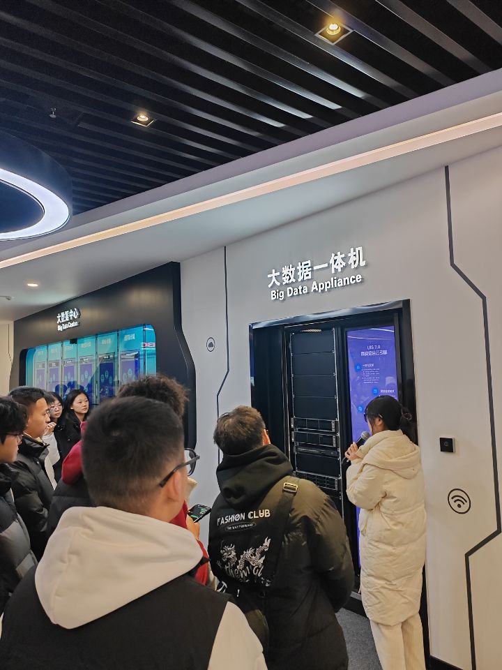 12月18日上午,在老师的带领下,同学们走进了郑州新华三大数据技术有限公司进行实地探访。在讲解员的带领下参观了新华三大数据平台,通过讲解员的讲解和前沿技术视频的观看,直观地了解了大数据技术领域的发展历程和关键技术,视频中真实的技术应用案例让同学们对大数据技术的创新应用有了更加深入的理解,对大数据技术的未来发展有了更加清晰的认识。