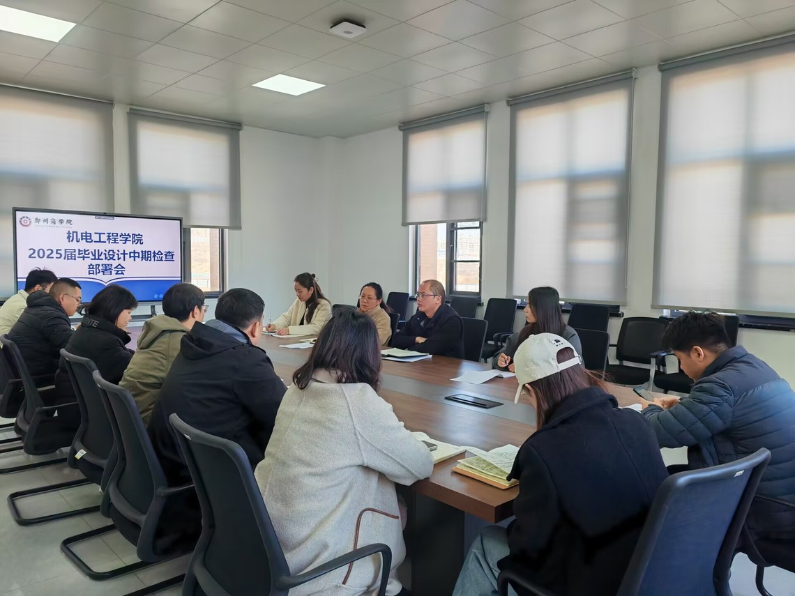 为进一步提升毕业生毕业论文(设计)的专业性与规范性,强化过程性管理,确保毕业论文(设计)综合质量,根据学校质评中心、教务处等相关部门的工作部署,机电学院于本学期第4、5周开展了毕业论文(设计)中期检查工作。在检查工作启动前,机电学院高度重视,于2025年3月10日组织召开了毕业论文中期检查部署会。会议由学院领导、教研室主任、质量监督员及论文联络员等共同参与。会议重点强调了25届毕业论文(设计)工作的重要性,明确了本次中期检查的具体内容、标准及时间节点,并对检查流程进行了详细安排,以确保检查工作的有序推进和有效落实。