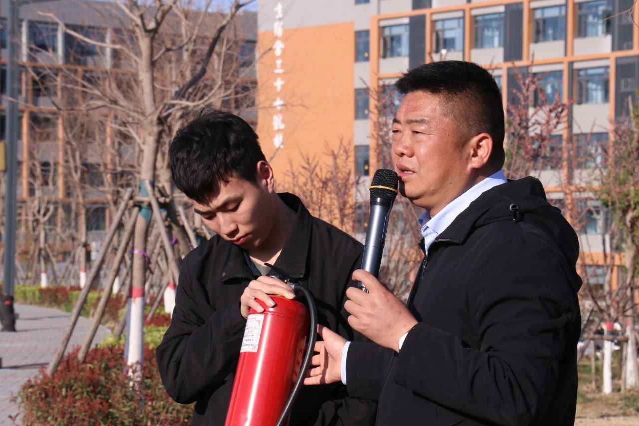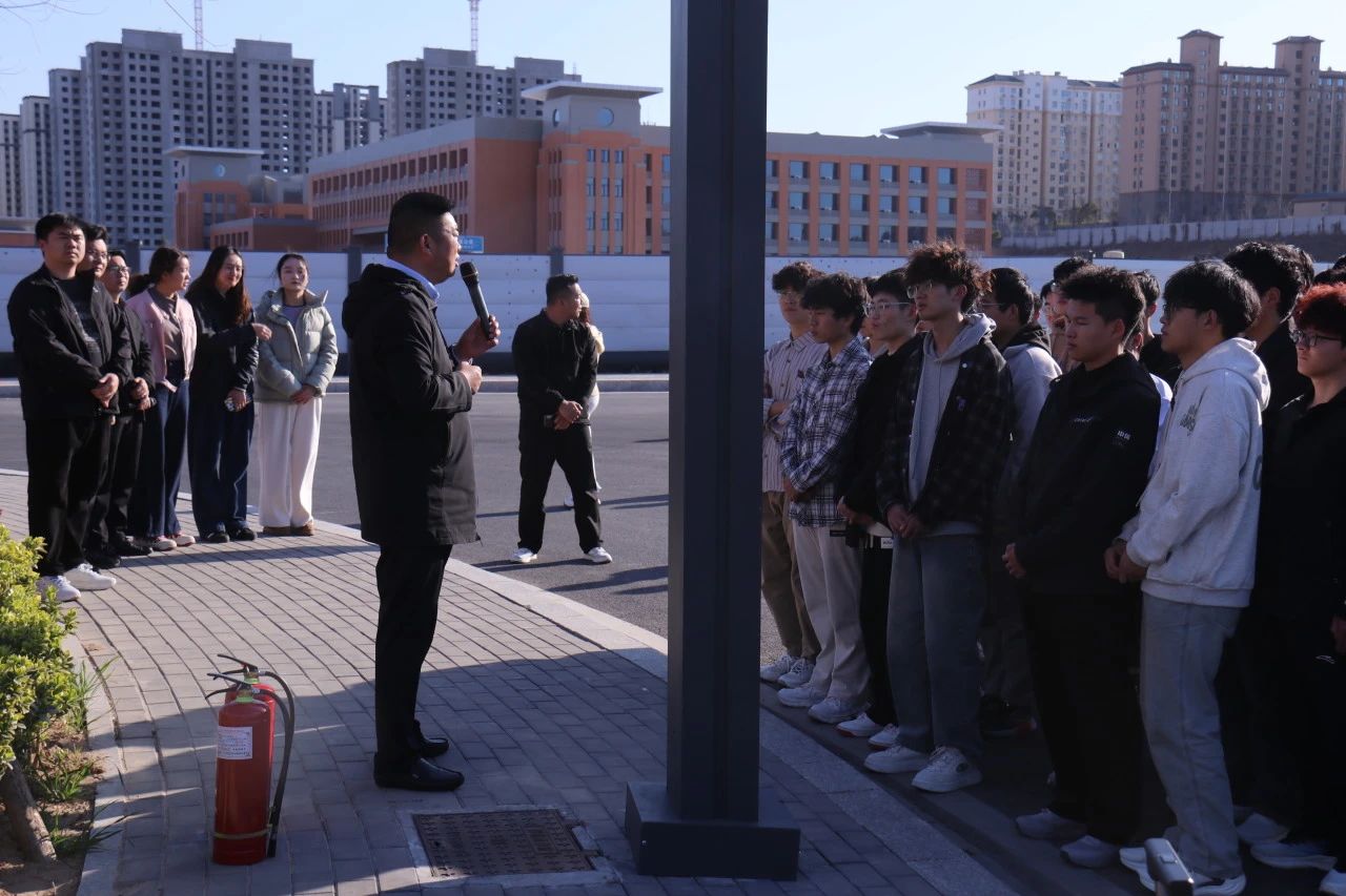 消防警报拉响的瞬间,橙色烟雾迅速弥漫。学生骨干们迅速行动起来,班长们在楼道口镇定指挥,引导同学们有序向安全出口移动;宿舍长们则逐一确认宿舍内无人遗漏,带领舍友们用湿毛巾捂住口鼻,沿着安全出口标识快步撤离。生活委员们一边协助维持秩序,一边提醒大家不要慌乱。在他们的紧密配合下,参演师生仅用3分钟就顺利从六层宿舍疏散至室外安全区。保卫科人员在集结区现场演示干粉灭火器“提罐体、拔插销、握喷管、压把手”四步操作法。保卫科科长李勇生在讲评中指出,近期宿舍违规使用电煮锅、卷发棒等现象有所抬头,必须贯彻“预防为主”方针,严禁堵塞消防通道。