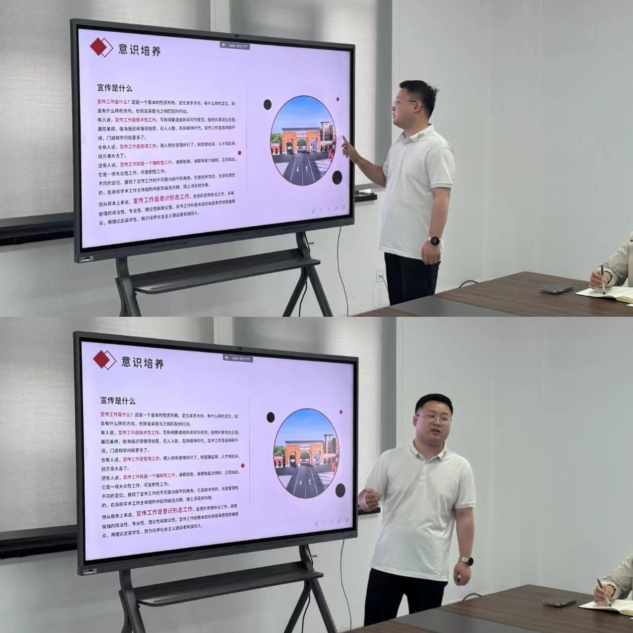 为提升辅导员队伍建设,助力学校本科教育教学诊断评估,4月8日下午,机电工程学院“知行驿站”第六讲在信工大楼3楼会议室举行。学院党委书记杨茗涵、行政秘书兼团委书记顾成健及全体辅导员参会。此次分享乔龙飞老师以《AI赋能校园宣传工作》为主题,结合诊断评估中“育人成果可视化”需求,现场演示AI工具在宣传策划、内容生产、舆情应对等环节的实战应用,助力学院宣传工作增质提效。