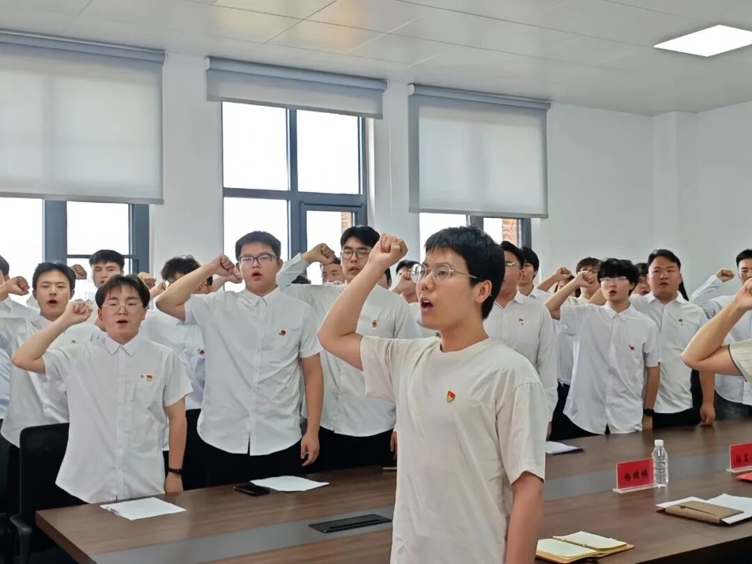 活动第一项,在毕业生党员代表史振振同志带领下,全体参会党员高举右拳,齐声重温入党誓词。在铿锵的誓言中,党员们进一步增强入党初心,强化党员身份意识。