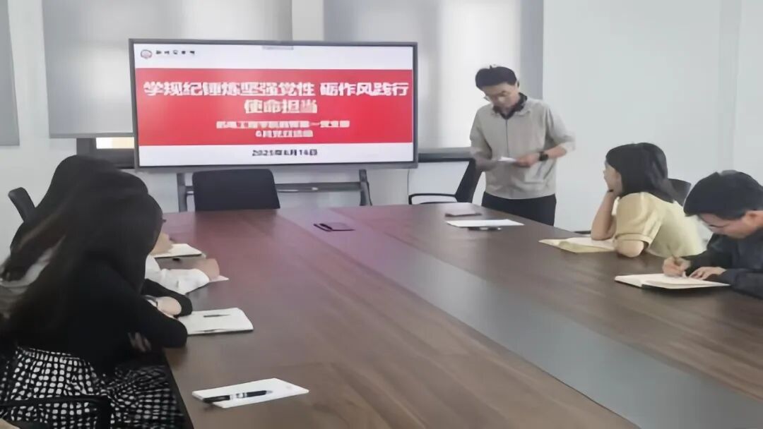 6月20日,机电学院教师第四党支部在躬行楼小会议室开展了“学规纪锤炼坚强党性,砺作风践行使命担当”主题党日活动。支部书记任孝锋带领支部党员深入学习了《习近平总书记在河南考察时的重要讲话精神》相关内容。