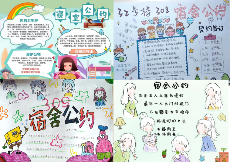 活动目的:此项活动旨在以寝室为单位的形式,通过寝室成员齐心协力,共同出谋划策,采用图文并茂的方式制定大家所公认的宿舍公约,展示寝室积极向上、团结协作的氛围,增强宿舍凝聚力和向心力,打造和谐宿舍。