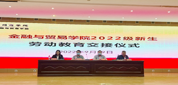 为切实贯彻学校“三大教育、两大工程”,提升学生劳动素养,扎实做好新学年劳动教育工作,帮助22级新生树立正确的劳动观念,养成良好的劳动习惯。9月29日晚,金贸学院在图书馆一楼报告厅举办2022级新生劳动教育工作启动暨交接仪式。我院院长杨山峰、党委书记吕鹏、教学秘书胡乃峰、全体辅导员老师、2021级劳委代表以及2022级全体新生共同参加。