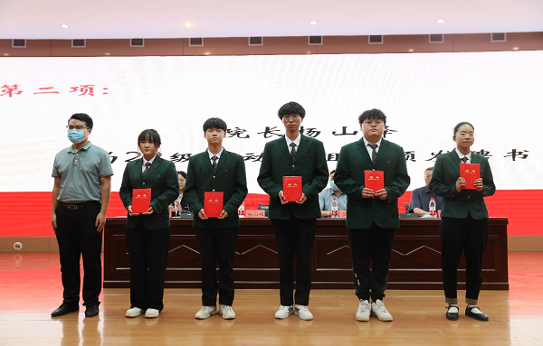 交接仪式上,首先由胡科长宣读《关于金融与贸易学院表彰2021-2022学年劳动教育先进个人和集体的决定》,并为21级室内外劳动委员颁奖,由吕鹏书记对劳动教育先进班集体颁奖,杨山峰院长为22级劳动小组长颁发聘书,张雨桐老师为优秀劳动委员颁发荣誉证书。