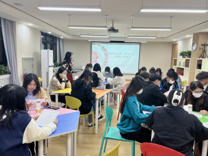 活动伊始,贠芸老师带同学们做了一个热身活动--“大风吹”,以活跃氛围。接着,介绍了曼陀罗绘画的由来及作用。然后,通过“冥想”的方法,引导同学们进入安静平缓的氛围,顺其自然地开启曼陀罗绘画。呈现曼陀罗图形,让同学们通过涂色在曼陀罗绘纸上表达心中的情绪、意向以及故事,感受绘画中浮现的各种心理体验,尝试从不同的角度来欣赏自己的作品,并给作品命名。最后,邀请同学一起分享画中呈现的内容,体验曼陀罗的独特魅力。