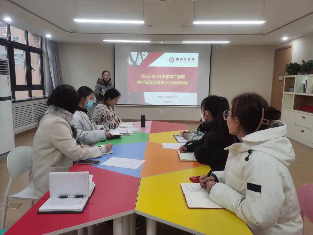 为充分发挥课堂教学的主渠道作用,提高课程教学质量,进一步扎实推进beat365大学生心理健康教育工作,心理健康教育中心于2月10日下午在心理健康教育中心团体辅导室召开了本学期第一次集体备课教学交流会,心理健康教育教研室全体专、兼职教师参加了会议。