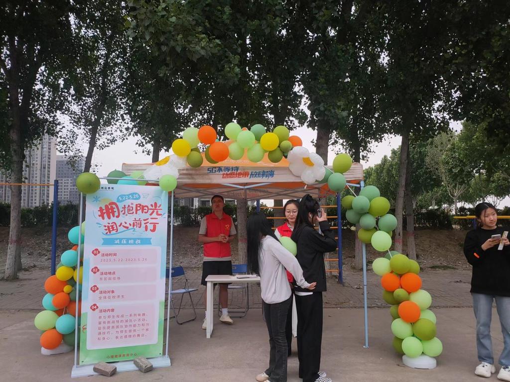 第三站为东区田径场,设置“减压挑战”活动,同学们完成一系列富有挑战的减压小活动,在提高团队协作和沟通技巧的同时,放松心情,缓解压力。
