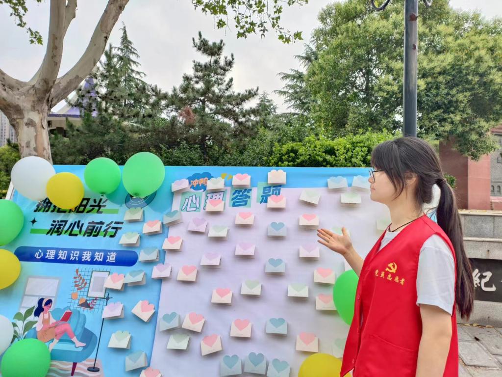 本次心理游园会设置4个站点5项挑战,第一站为建校纪念碑,设置了“心理知识我知道”挑战活动,参与学生看题作答,连续答对5题即通关,通过答题活动让更多的学生了解心理知识,提升心理健康水平。