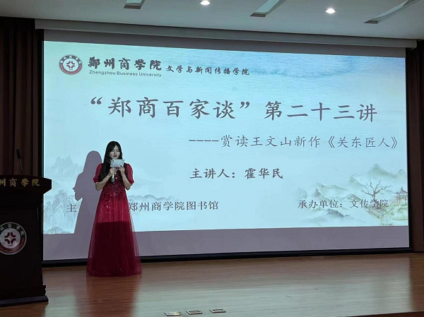 书籍是漫长岁月中人类思想精神传承的记录者,平滑的书页内定格着悠远历史跌宕起伏的缩影,读一本好书的意义,不在于书籍本身,而是让自己变得辽阔的过程。5月30日晚,图书馆联合文传学院开展了“郑商百家谈”第二十三讲主题活动。本次活动特邀文传学院霍华民教授分享民间人物散文集——《关东五十匠》。同学们在老师的娓娓道来中见一方天地,在字里行间的穿梭中感受独到匠心精神。