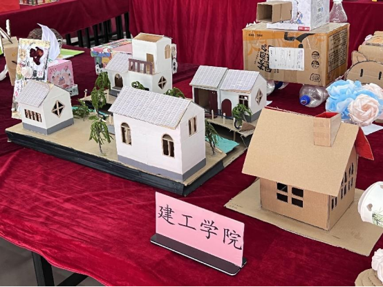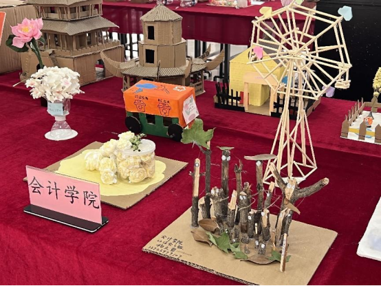 各二级学院积极响应,组织学生综合利用废弃纸箱、塑料袋、塑料瓶等制作手工作品,作品创作期间,郑商学子充分发挥自己丰富的想象力,以劳动和环保为主题,运用劳动工具、生活旧物以及劳动场地的树叶等素材制作成精美的手工作品。