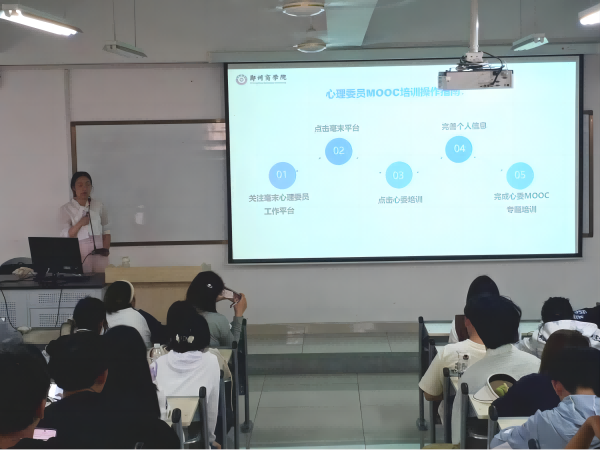 活动内容:为进一步提高班级心理委员自身素质和工作能力,充分发挥心理委员在普及心理健康知识、组织心理健康教育活动、及时有效开展心理危机干预等方面的积极作用,促进大学生朋辈心理辅导工作扎实有效开展,借助高校心委工作平台,面向全体2022级班级心理委员、心理健康社团“驿心社”开展心理委员MOOC培训认证工作。