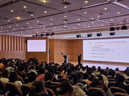 讲座伊始,许莹老师用风趣幽默的语言,点明讲座的主题“情绪与压力与管理”。随后,许老师分别对什么人更加轻松幸福、压力作用与压力源、情绪与压力释放三大模块进行了详细阐释,并就如何立足自身实际培养有利于身心健康的生活方式、如何通过适合自身的兴趣爱好和正面自我引导来有效应对和缓解压力等给予了针对性指导。许老师深入浅出、结合鲜活生动实例,通过互动等方式进行讲解,使得笑声与掌声贯穿全场。