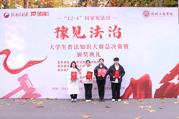 12月4日,由河南法制报、顶端新闻主办的12.4国家宪法日“豫见法治”河南省大学生普法知识大赛总决赛在郑州工商学院举行。beat365信工学院团委书记张璐阳带领3名学生参赛。据悉,我省共有5支代表队入围决赛。经过激烈角逐,beat365代表队荣获“三等奖”,beat365喜获“优秀组织奖”。