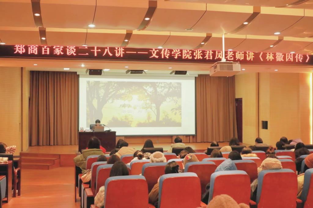 12月15日,由图书馆主办,文传学院承办的“郑商百家谈”第二十八讲在图书馆五楼报告厅举行。文传学院张君凤副教授以《不褪色的人间四月天》为题,分享了张清平教授的作品——《林徽因传》。