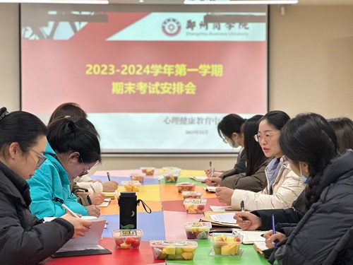 为及时总结本学期教学工作,提升教师教学能力和教学质量,同时做好期末考试安排,严肃考风考纪,细化考务管理,确保期末考试顺利进行,12月20日下午,心理健康教育中心在团体辅导室召开了期末考试安排会,心理健康教育教研室无课教师参加了会议。
