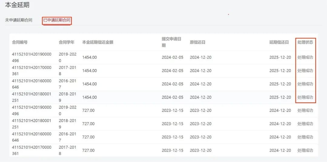 2.对处于还本宽限期的贷款学生,因2024年不需偿还贷款本金,故无需申请延期偿还贷款本金。