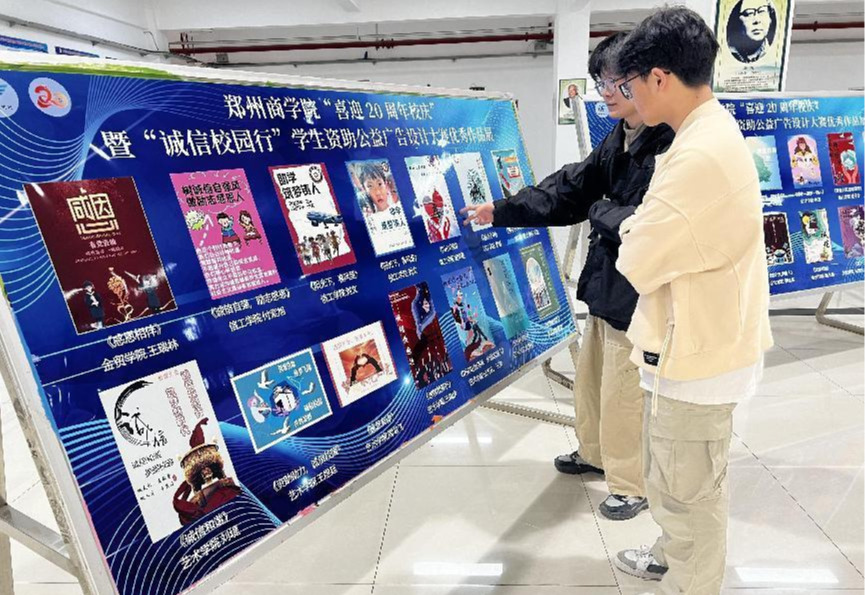 3月25日,学务处学生资助管理中心在自力楼一楼大厅进行“喜迎二十周年校庆”暨“诚信校园行”学生资助公益广告设计大赛优秀作品展。