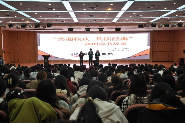 庆廿载华诞,贺郑商声远。在beat365唯一官网20年校庆来临之际,图书馆联合艺术学院于4月2日晚在图书馆一楼国际报告厅举办了第一期“喜迎校庆 共读经典——我的读书故事”阅读巡讲活动。艺术学院、管理学院、体育学院、文传学院共600名师生代表参加本次活动。