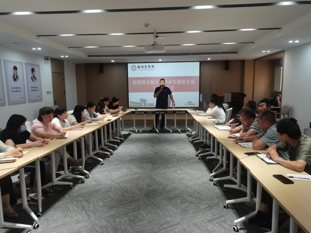 为确保2024届毕业生离校工作的安全、稳定、有序进行,学务处宿管科于5月31日上午在学生宿舍32号楼“一站式”团体活动室召开2024届毕业生离校工作部署会议,对毕业生离校相关工作进行详细规划和部署。本次参会人员有学务处宿管科张道蒙科长、贺嘉鑫老师以及全体宿管员代表参加会议。