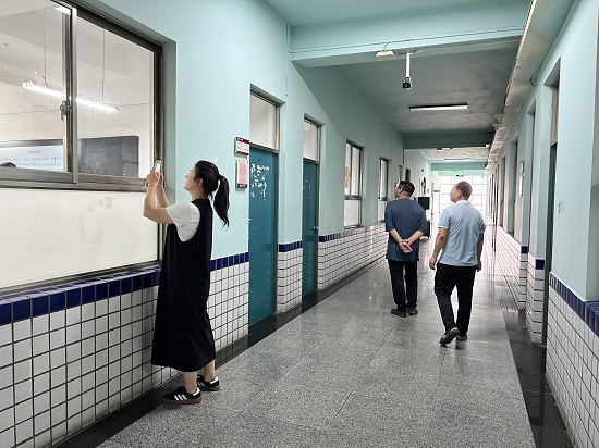 本次巡查走访一号教学楼、二号教学楼、四号教学楼,巡查过程通过对楼管员现场交流、查阅值班记录、消防记录、线上报修记录等形式,深入了解各楼工作开展情况,在巡查过程中,魏瑶科长着重对公区、教室蜘蛛网进行检查,要求各楼打扫要仔细,不放过边边角角。