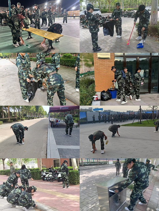 为营造一个干净、整洁、有序的校园环境,学务处劳卫科开展校园卫生清洁活动,并面向全体在校生,倡导杂物不落地,以军训方阵为责任单位,自觉维护训练场地辖区卫生,培养学生的环保意识,师生分工有序,配合密切,对果皮纸屑、塑料袋、食品袋等废弃物进行日常清理。从生活习惯到责任担当,从个人意识到团队精神,养成良好的个人生活管理的能力,共同创造干净整洁的校园环境,营造出良好的军训活动氛围。