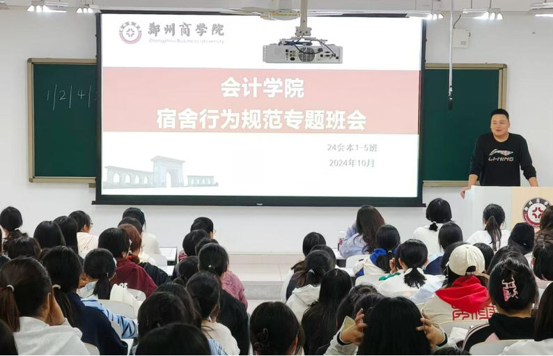 各学院辅导员在班会上带领同学们对宿舍条例和行为规范进行系统性学习,对于需要注意的细节进行一一讲解,并结合具体的案例的为学生进行说明。最后,辅导员们提倡同学们要做好以下几点:第一,尊重理解和包容他人的生活习惯,通过友好沟通和协商来共同维护宿舍和谐。第二,坚持安全第一,严格遵守校规校纪和宿舍安全规范条例,共同构建安全的居住环境。第三,注重个人卫生定期打扫寝室和公共区域卫生,共同打造干净整洁美观宿舍。