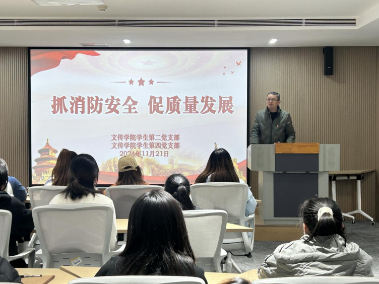 为深入贯彻消防安全意识,共筑安全屏障,提高学生消防安全应对能力。11月21日下午,文传学院学生第二、第四党支部在32号楼“一站式”学生社区团体活动室联合开展学习习近平总书记关于安全生产和消防安全重要指示批示精神主题党日活动,学生第二党支部书记牛道恒、第四党支部书记乔玉洁和两个支部的学生党员参与此次活动。