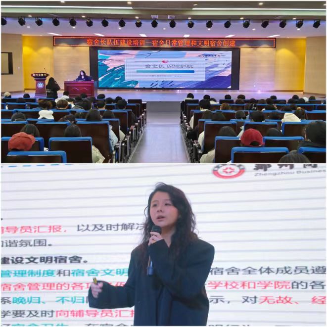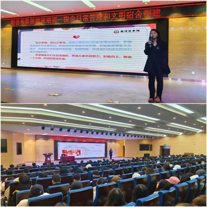 为全面优化学生宿舍管理,进一步营造文明、和谐、团结的宿舍氛围,增强宿舍长的管理意识与责任感,12月4日下午,学务处宿管科在自力楼报告厅开展2024-2025学年第一学期宿舍长队伍建设-“宿舍日常管理和文明宿舍创建”专题培训。此次报告特邀优秀辅导员代表-信工学院杨瑞瑞老师担任主讲,各二级学院宿舍长参加,会议由宿管科贺嘉鑫老师主持。