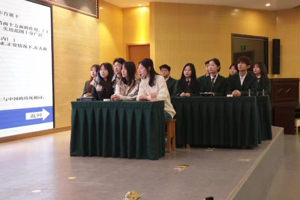 在第一轮“有问必答”环节中,每支队伍按赛前抽签顺序依次上场。按照各学院抢答器序号的顺序,每支队伍抽取一个答题包进行答题。各参赛队伍成员之间团结协作,互相配合,精神集中。