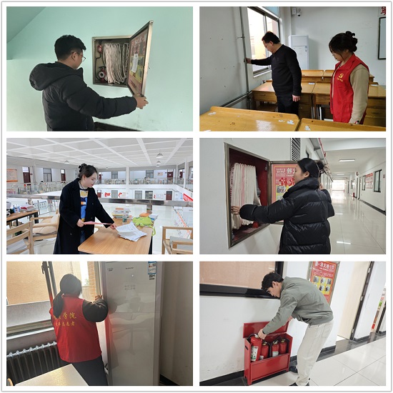 各学院党团学书记深入一线,带领辅导员老师及学生志愿者相继开展教学楼消防安全卫生大检查,重点检查了疏散通道、安全出口是否保持畅通无阻,消防设施器材是否完好有效,电线电路是否老化裸露,对于可能存在的隐患,当场指出问题所在,并提出整改建议。