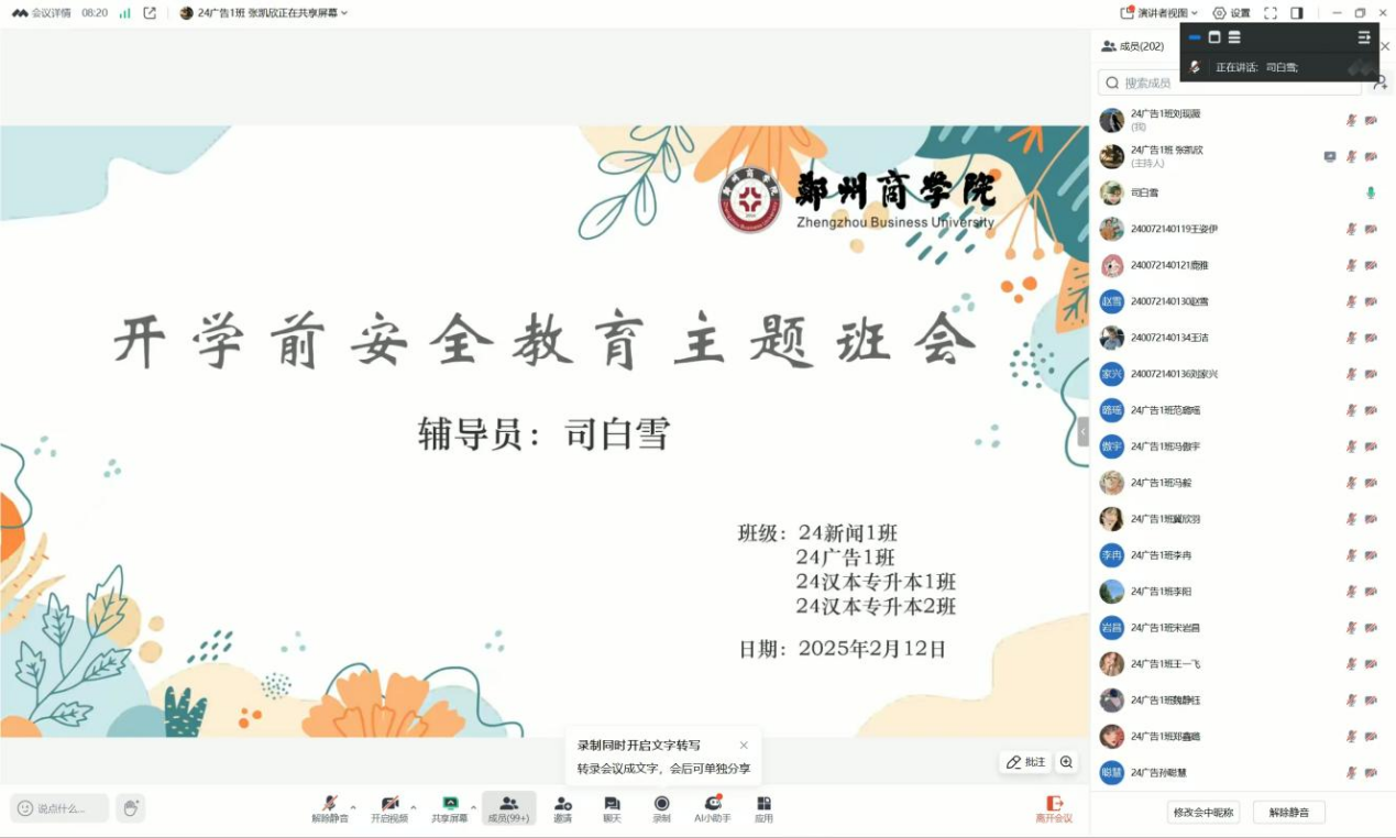 班会上,各学院辅导员老师着重强调了返校安全的重要性,并围绕交通安全、人身安全、财产安全等事项进行了详细讲解。通过图文展示、播放视频、剖析真实案例等多种形式,提醒学生们要深刻认识到安全隐患无处不在,返校途中要注意交通安全,提前规划好行程,乘坐私家车要提前了解交通情况,乘坐公共交通的学生要注意保管好私人物品,贵重物品不离身;开学季是电信网络诈骗高发期,注意防范电信诈骗,要谨慎保护个人隐私,不随意点击不明链接,不轻信他人,遇到可疑情况及时向老师或家长求助。此外,辅导员老师还强调了返校时需要准备的各项材料和注意事项,并鼓励大家提前做好开学准备,调整作息时间,以积极向上的心态迎接新学期的挑战。