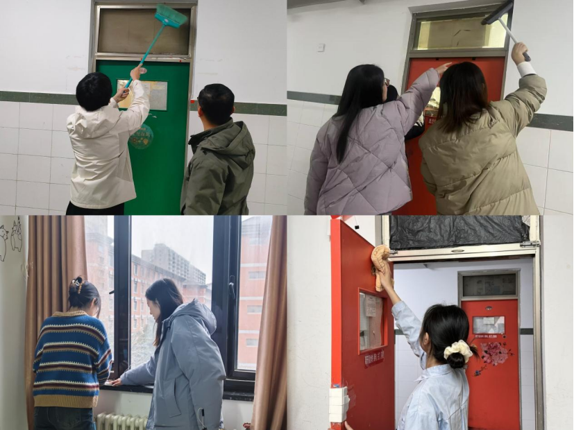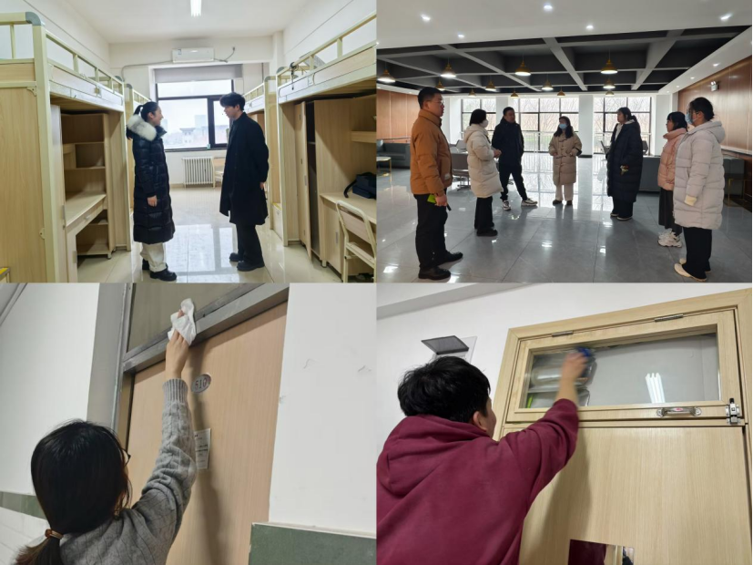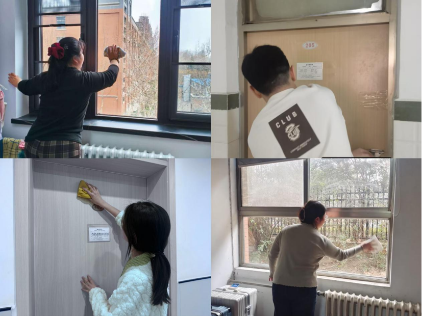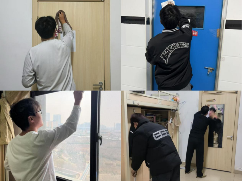 开学第一周,各学院党团书记带领辅导员走进学生宿舍,排查宿舍内是否存在电线私拉乱接、使用违规电器等安全隐患;同时,对宿舍的卫生情况进行严格把关,组织同学们对宿舍门、窗纱以及窗台等各个角落进行了全面清洁,确保不留卫生死角。此次行动得到各二级学院积极响应支持,经过全体学生共同努力,宿舍门窗焕然一新,室内环境更加整洁明亮,为同学们营造了更加舒适的生活氛围。
