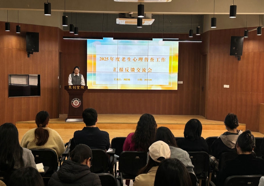 为总结心理普查工作,分析学生心理健康现状,并为后续心理健康教育与干预工作提供有力依据,心理健康教育中心于4月3日下午在学生事务中心三楼路演厅组织开展2025年度老生心理普查反馈交流会,由心理健康教育中心科长刘思楠主讲,2022级本科、2023级本专科辅导员参会。