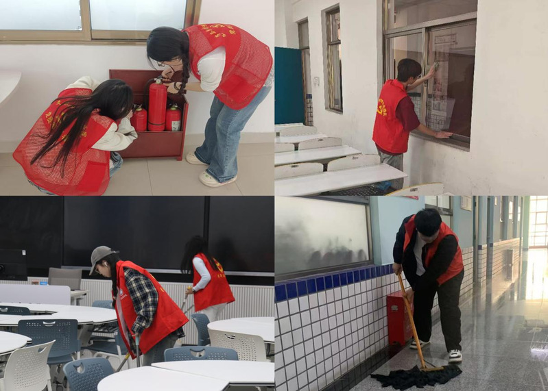4月10日-11日,劳卫科组织各二级学院开展“整洁卫生、你我同行”教学楼宇卫生大清扫活动,各学院积极动员,对学生使用教室、辅导员办公室及教学楼公区卫生死角进行了全面打扫。各学院仔细清理了蜘蛛网、擦拭了教室门窗,并将教室中的劳动工具进行了规范摆放。同时排查了安全隐患,确保教学楼宇消防设施可以正常使用、疏散通道保持畅通无阻。