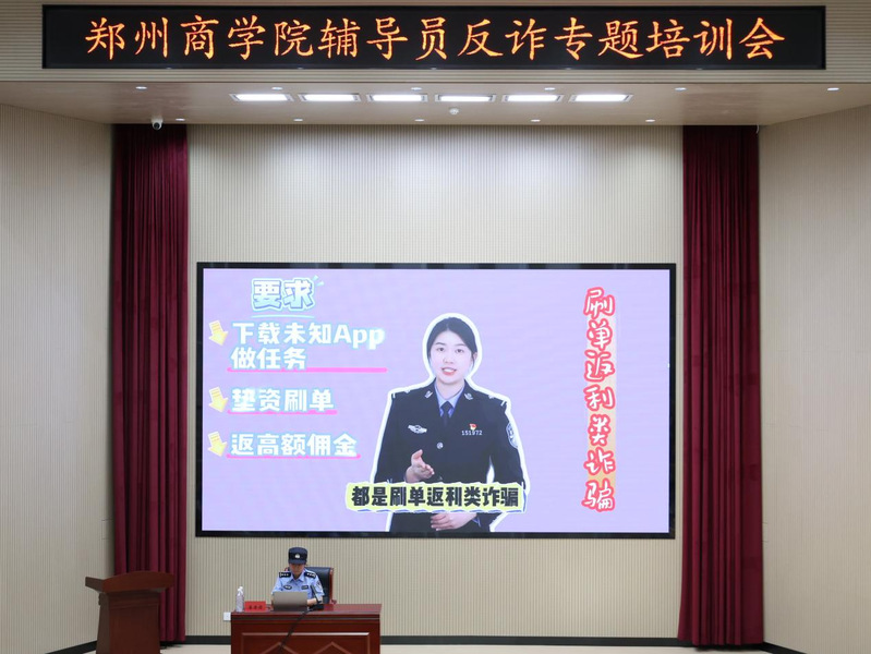 为提升辅导员防范电信诈骗的工作能力,5月12日上午,beat365唯一官网联合地方反诈部门在三彩校区躬行楼报告厅开展校地联动反诈专题培训。本次培训会由学务处副处长贺萌主持,紫荆路社区民警李丹丹警官主讲,全体辅导员共同参加。