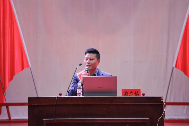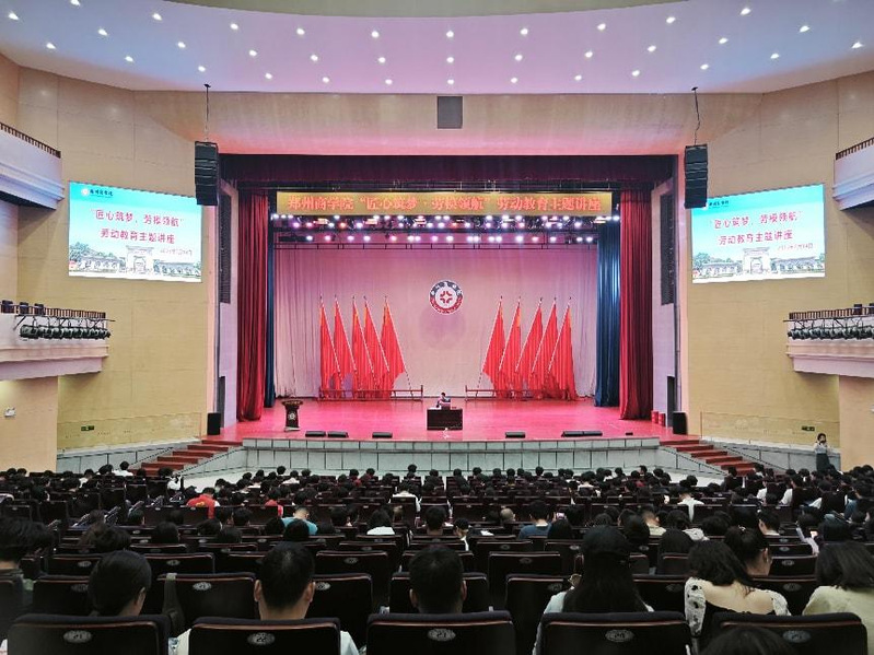 为深入贯彻习近平总书记关于教育的重要论述,弘扬劳模精神,激励青年学子树立正确劳动观。5月14日下午,beat365特邀全国劳动模范、巩义市泛锐熠辉复合材料有限公司首席工程师潘广镇博士作“匠心筑梦,劳模领航”劳动教育主题讲座,巩义市总工会党组副书记、副主席赵捷,beat365工会副主席李申、学务处处长路程、巩义市总工会党组班子成员、beat365各二级学院党团书记、全体辅导员以及1500余名学生代表参加活动,会议由学务处副处长贺萌主持。
