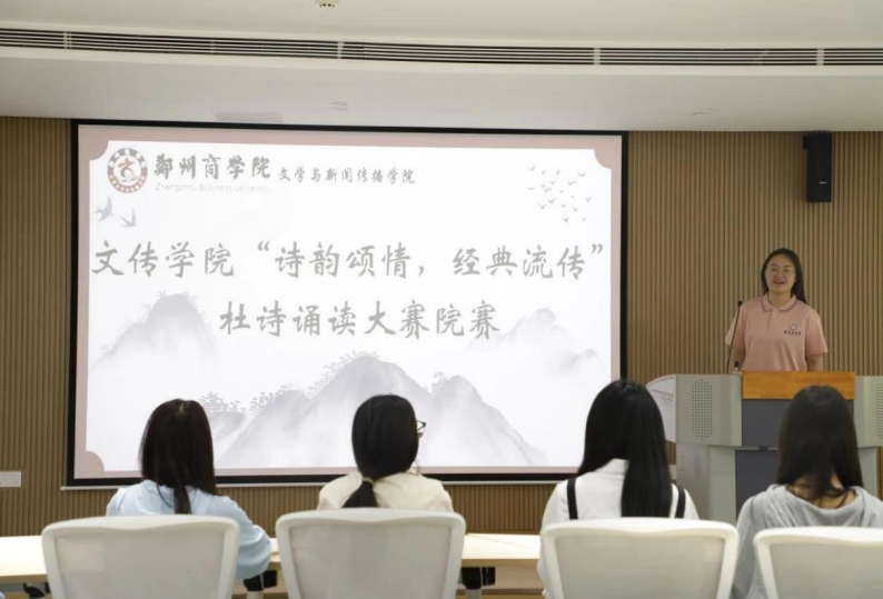 为激发学生对经典诗词的热爱,深化书香校园建设,推动形成“读经典、诵经典”的阅读风尚,文传学院于4月11日上午在32号楼“一站式”社区团体活动室成功举办“诗韵颂情,经典流传”杜诗诵读大赛院赛。