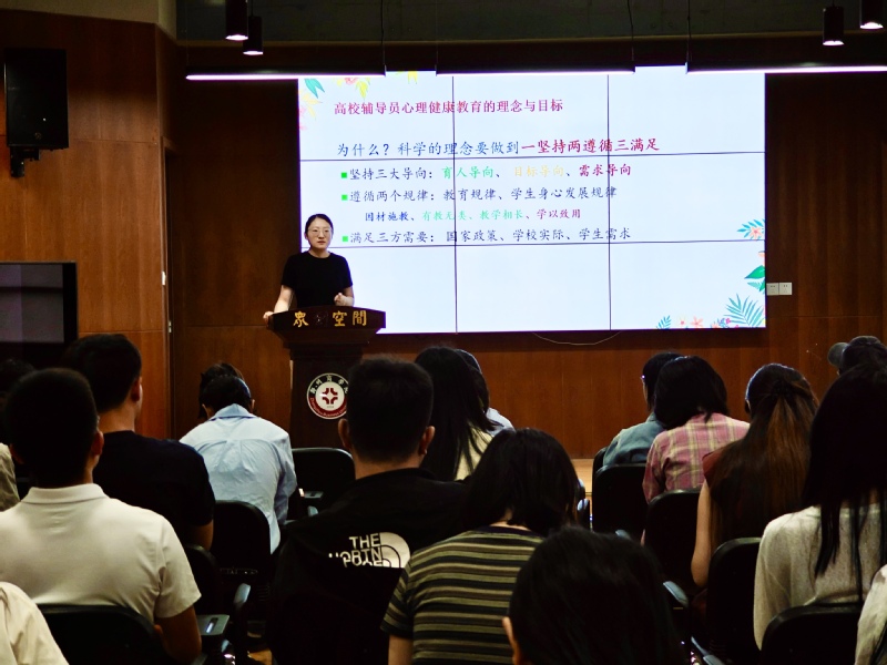 为全面提升新生辅导员心理健康教育工作水平,筑牢校园安全稳定防线,9月8日上午,心理健康教育中心举办了以“新生辅导员心理健康教育的理念与实务技能培训”为主题的专题培训。本次培训旨在帮助新生辅导员深刻理解工作理念、熟练掌握实务技能,确保新学期学生工作“心里有底、眼中有数、手上有招”。培训由心理健康教育中心科长刘思楠主持,2025级新生辅导员参会。