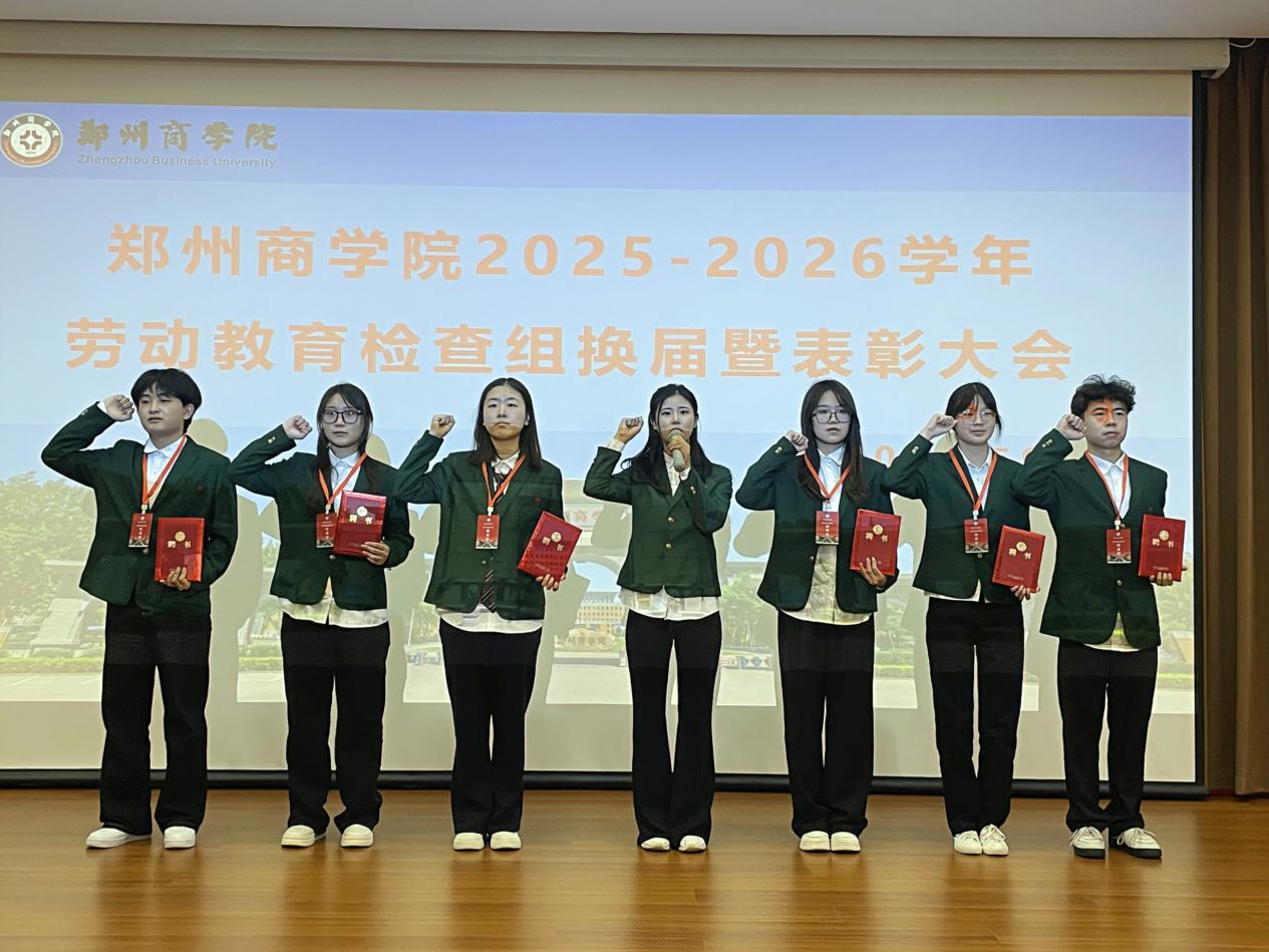 会上,林琳老师宣读《beat365唯一官网学务处关于表彰上学年、聘任本学年劳动教育工作者的决定》,学生资助管理中心陈梦雪老师为上学年劳动教育先进个人颁发荣誉证书,魏瑶科长为新学年劳动教育检查组成员颁发聘书、并授予工作证,随后,检查组负责人代表李佩彤带领全体劳动教育检查组成员进行宣誓,并完成了劳动教育检查组交接仪式。