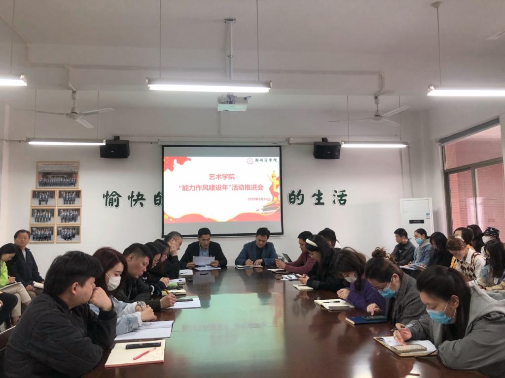 为深入学习贯彻党的十九届六中全会精神和习近平总书记关于能力作风建设的重要论述,贯彻习近平总书记在中央党校(国家行政学院)中青年干部培训班开班仪式上发表的重要讲话精神。3月10日下午,我院在艺术大楼二楼会议室召开“能力作风建设年”活动推进会。艺术学院院长李宪广、党委书记周余、全体教师和全体辅导员参加会议。