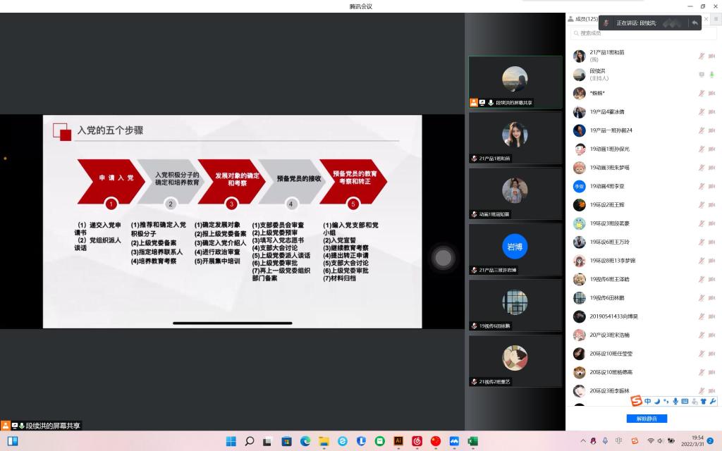 为进一步加强入党积极分子的队伍建设,更好的学习和了解党章,艺术学院党委于2022年3月31日在线上举行第34期入党积极分子第二次在线党课培训。会议由学生第三党支部书记段续洪主讲,全体入党积极分子参加线上会议开班典礼。