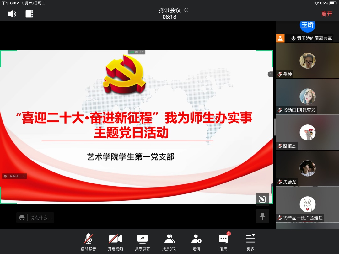 为做好艺术学院疫情防控工作,艺术学院4个学生党支部组织开展了“喜迎二十大·奋进新征程”我为师生办实事主题党日活动。