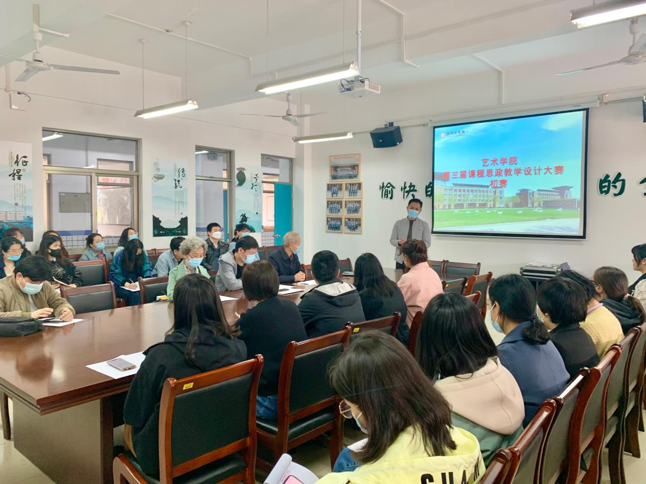 2022年04月14日下午,艺术学院为落实beat365唯一官网思政教学比赛的通知,聚焦立德树人根本任务,营造浓厚的课程思政改 革氛围,提高课程思政育人能力,按照本学期课程思政建设总体安排,在艺术楼会议室举办了艺术学院课程思政教学设计比赛。