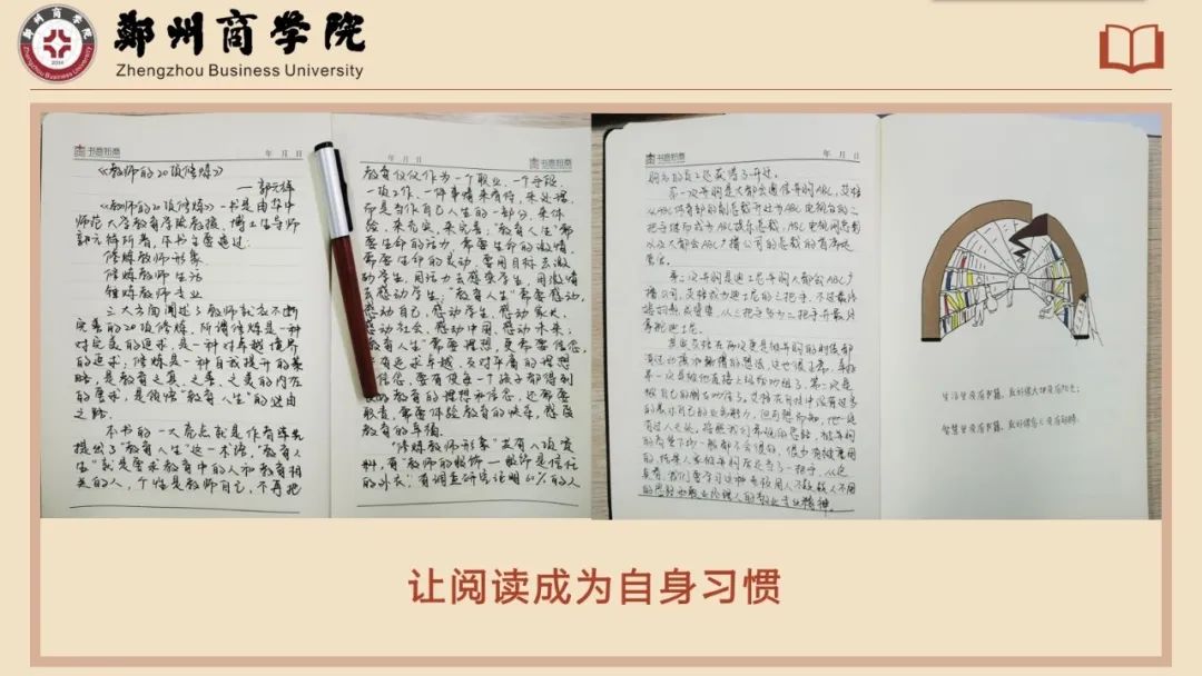 “腹有诗书气自华,最是书香能致远”,从小父母就教导他“读万卷书,行万里路”,通过读书,他也从一个农村孩子刻苦求学,到如今成为一名光荣的高校辅导员。在学生日常管理当中,他注重言传身教,在学生中率先垂范,模范带头,让阅读成为自己的一种习惯,带动学生的读书行动。