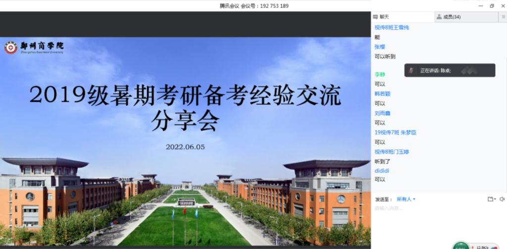 对于2019级考研学子来说六月至九月之间的时间是2023年考研的关键备考阶段,为了帮助学生抓住暑期时间,增强学生考研信心,提升考研竞争力,2022年6月5日下午七点,艺术学院视觉传达设计专业老师组织考研学生在线上开展了暑期考研经验交流会,邀请2022年考研上岸的学姐进行考研经验分享,同时邀请经验丰富的张萌老师围绕河南地区考研院校进行了针对性的分析讲解。