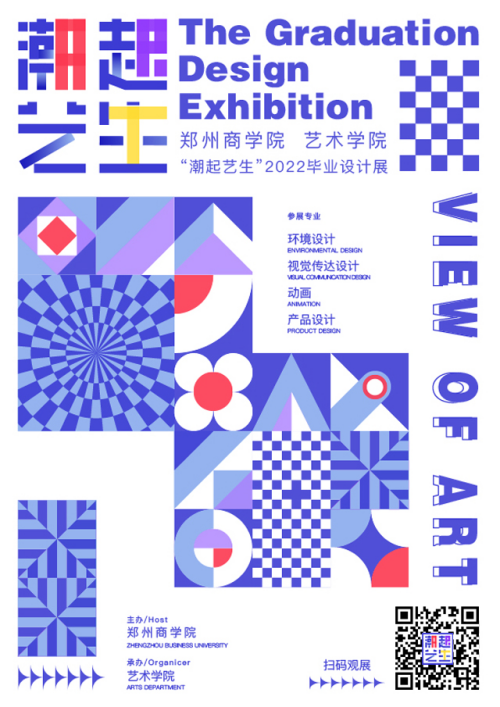 艺术学院2022届毕业设计展以“潮起艺生”为主题。作品汇集了上百位毕业生的优秀作品,囊括了环境设计、视觉传达、产品设计以及动画四个专业。作品题材多样、内容丰富、主题鲜明,虽部分作品显现稚嫩,但却饱含了毕业生门蓬勃的艺术激情、旺盛的艺术创造力和丰富的艺术想象力。莘莘学子们青春时代热烈而幽长的灵魂独白,将生命中最真挚的情怀、最灵动的火花用设计语言挥洒在一件件作品中,创造出了源于生活的心灵体验,阐释了毕业生对美好的感知和体会。春发其华,秋收其实。毕业设计作为一个句号,是学生对学院办学宗旨的回应,也是对老师教育的感恩。它既是学子们大学阶段学习的终点,也是其步入人生下一个阶段的起点。