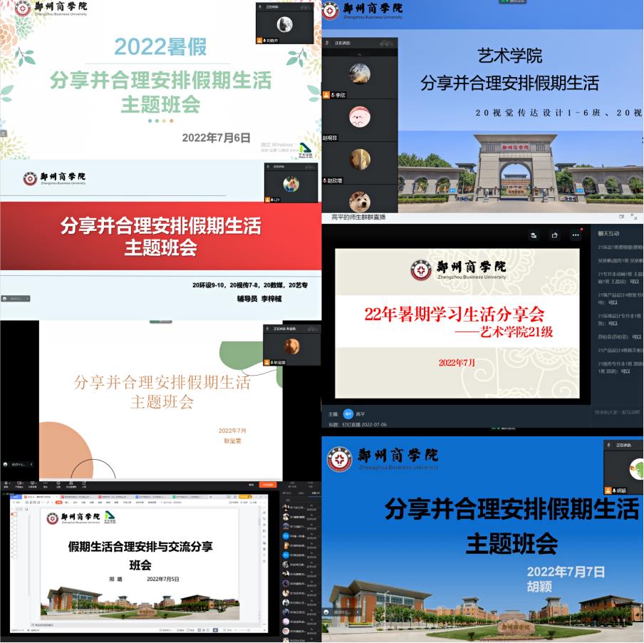 为强化暑假安全教育,使学生合理安排假期生活,全面提升自我,度过一个快乐充实的假期,7月5日-7日,艺术学院召开线上“分享并合理安排假期生活”主题班会。